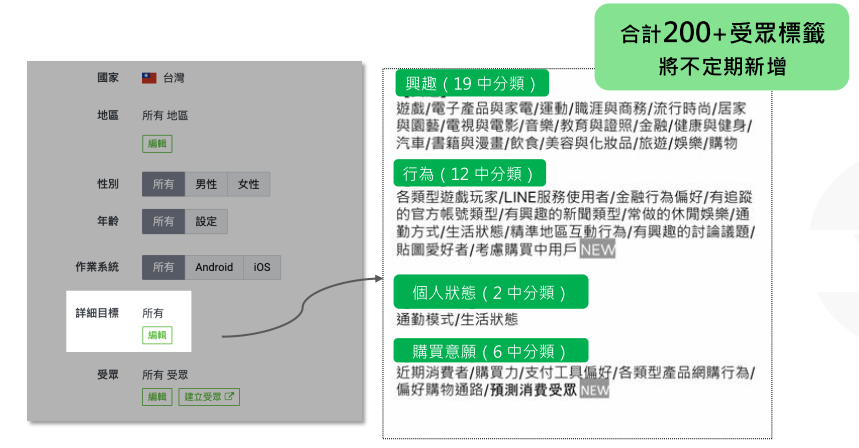 受眾屬性的興趣與行為:https://tw.linebiz.com/e-learning/system-audience-interest-and-behavior