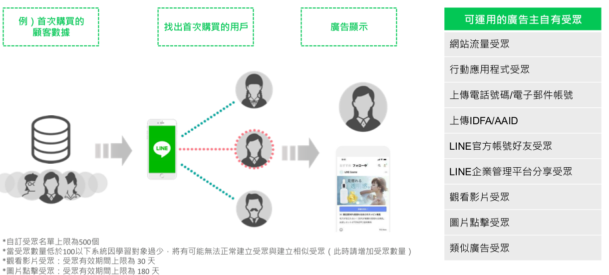 自訂受眾及類似受眾:https://tw.linebiz.com/e-learning/custom-audience-lineoa-and-lookalike