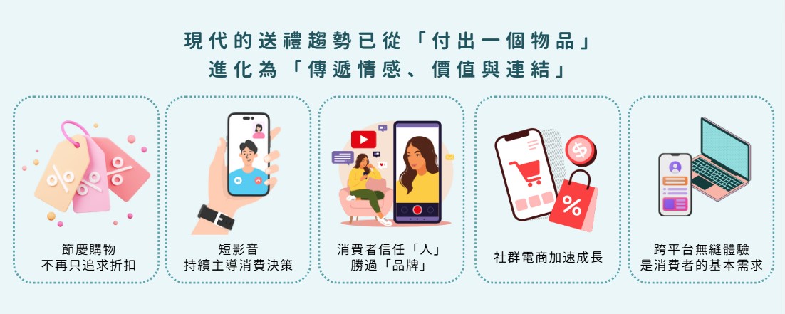 平台如 TikTok、Instagram Reels、YouTube Shorts 成為使用者搜尋禮物靈感與評價的重要來源。