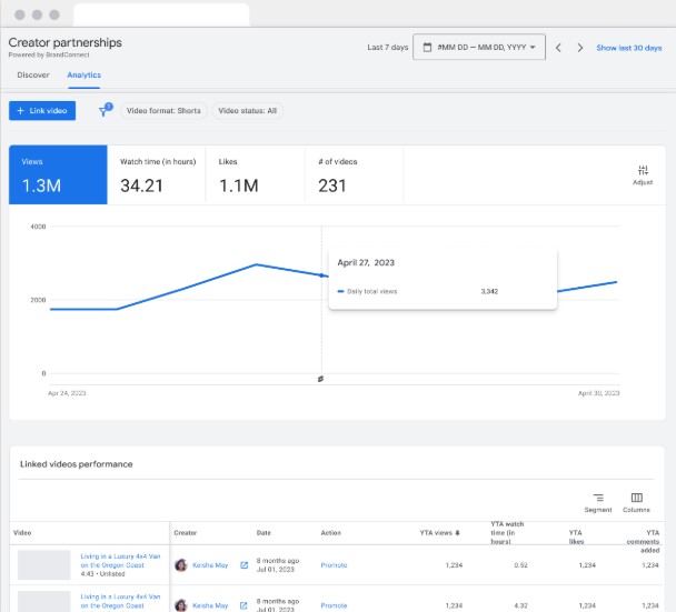 • 深入瞭解創作者的表現,以改善日後的合作夥伴關係。