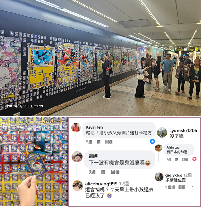 寶可夢選在高人流捷運空間舉辦快閃活動,並以創新「牆卡可撕」形式取代傳統展架,成功在通勤動線中創造停留與互動,成為最貼近日常的粉絲互動場景。
