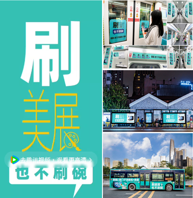 在中國洗碗機普及率僅約 3%,西門子與亮碟沒有照本宣科講「洗得多乾淨」,而是反其道而行,直接戳中「刷碗有多煩」的痛點。品牌以「刷什麼,也不刷碗」為核心創意,將消費者熟悉的日常用語「刷」延伸至不同情境——刷手機、刷劇、刷題、刷步數……唯獨不刷碗,形成強烈語義反差。活動在雙11期間橫跨多地,從地鐵、公交到燈箱都能看到這句話,搭配「地鐵裡刷劇嘻嘻,回家刷碗不嘻嘻」等標語, 到車身廣告「寧願刷玻璃,也不刷碗」,用幽默語氣把煩人的家務變成笑點,讓人心甘情願被共鳴。
